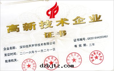 图(tú)为(wèi)深圳倍聲高(gāo)新(xīn)技術(shù)企業证書(shū)
