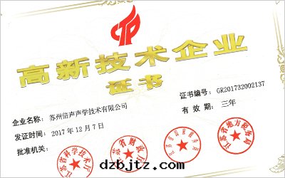 图(tú)为(wèi)蘇州倍聲高(gāo)新(xīn)技術(shù)企業证書(shū)